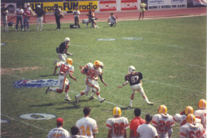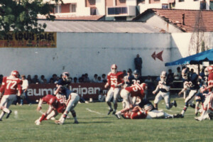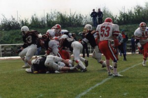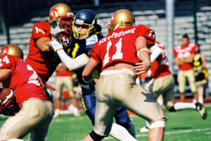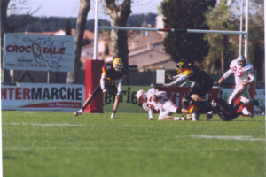 Plongez au cœur de l’histoire et de l’intensité du football américain français à travers une galerie photos unique dédiée aux origines et aux moments marquants de ce sport en France. Des années 80/90 aux matchs légendaires, revivez les actions décisives, les touchdowns spectaculaires, les plaquages puissants et l’ambiance électrique des stades.